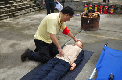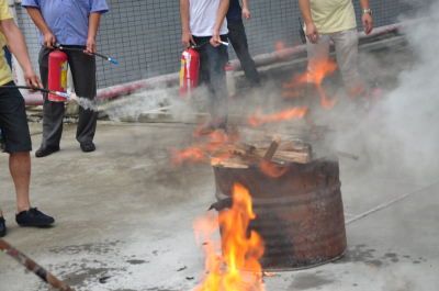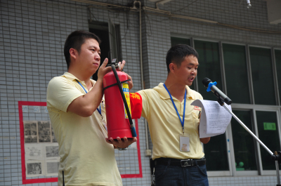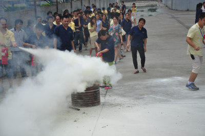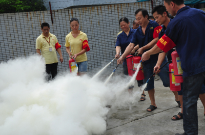 員工安全抵達廠外后領導開始講解滅火器使用方法