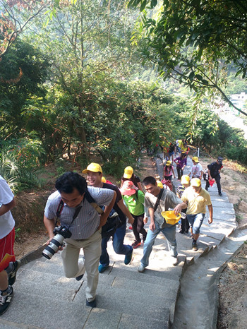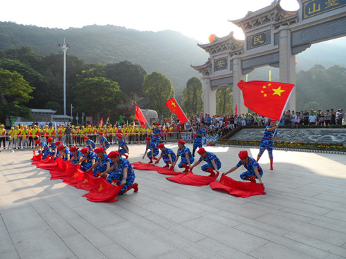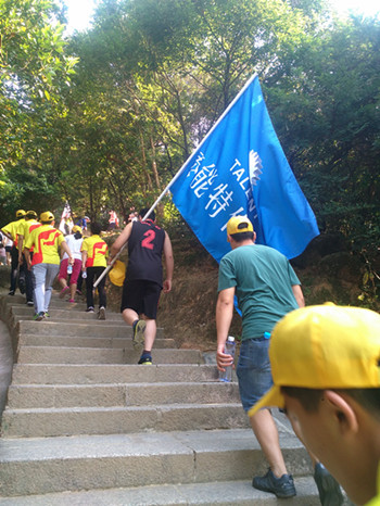 看完一系列精彩專業(yè)的表演來(lái)到羊臺(tái)山參加活動(dòng)的人們都一直連連拍手叫好,看著聲勢(shì)浩大的表演讓我們著實(shí)振奮人心,看完專業(yè)表演后,我們各自背上背上行囊,舉著公司旗幟,像山頂前進(jìn)。