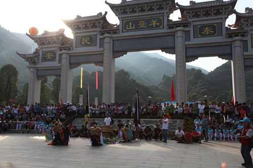 (進(jìn)入羊臺(tái)山石巖廣場(chǎng),集體合影留念)