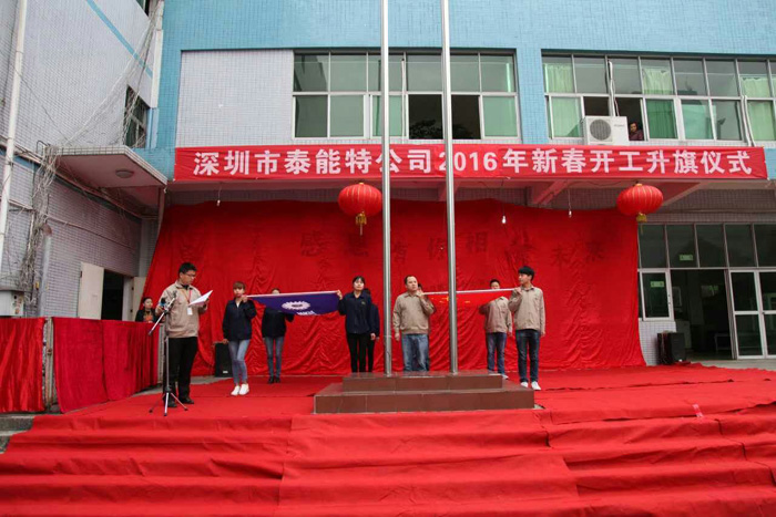 2016年2月15日(農(nóng)歷正月初八),泰能特人帶著滿腔熱情迎來了一年一度的開工升旗儀式。早上8點(diǎn)全體員工早早的穿好工裝整齊的列隊(duì)在公司大樓的旗桿下,開工鞭炮響起,伴隨著<歌唱祖國(guó)>的嘹亮歌聲,全體員工靜靜的注目著國(guó)旗和公司旗幟在護(hù)旗手的護(hù)衛(wèi)下緩緩地走上升旗臺(tái)。隨著<中華人民共和國(guó)歌>和<深圳市機(jī)械協(xié)會(huì)會(huì)歌>的再次奏響,國(guó)旗和公司旗幟再一次迎風(fēng)飄揚(yáng)在公司升旗臺(tái)的天空。在新的2016年,泰能特將繼續(xù)秉承“品質(zhì)、納期、服務(wù)、成本”的經(jīng)營(yíng)方針理念,為員工提供更加舒適的生活環(huán)境,為客戶提供超值服務(wù),為社會(huì)承擔(dān)責(zé)任,創(chuàng)造價(jià)值!