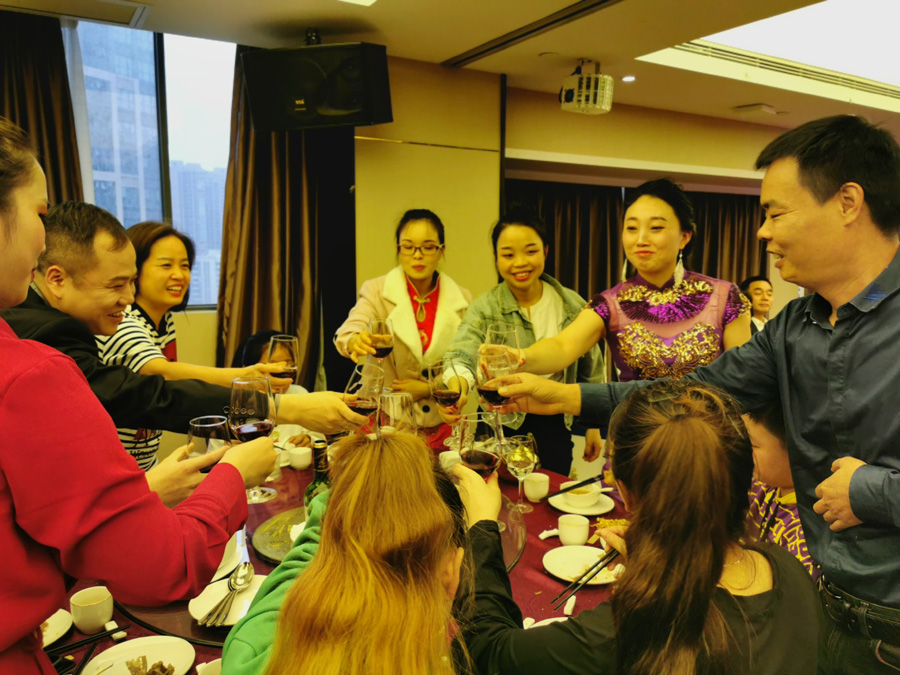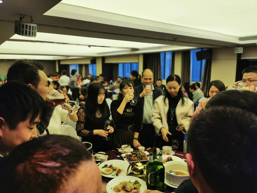 公司管理人員向員工敬酒表示感謝